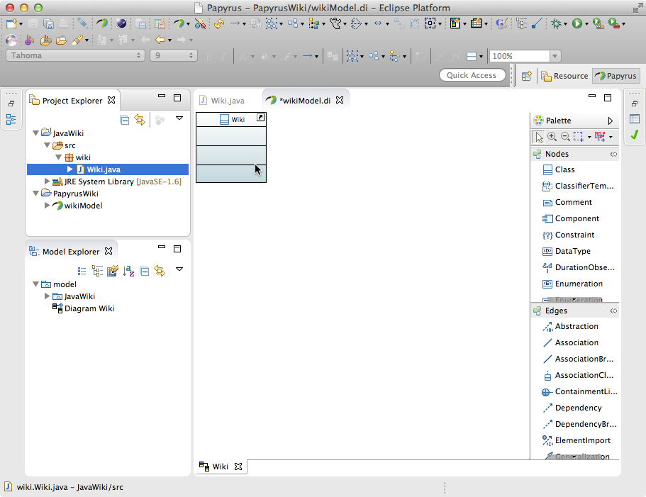 A Java class can be reverse-engineered into a Papyrus class diagram: