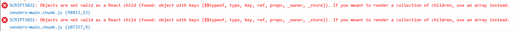 Error message: Objects are not valid as a React child (found: object with keys {$$typeof, type, key, ref, props, _owner, _store}). If you meant to render a collection of children, use an array instead.